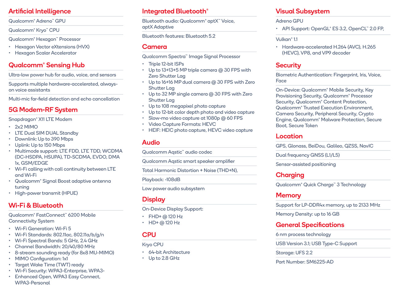 | Внутренняя маркировка | Qualcomm SM6225, SM6225-AD |